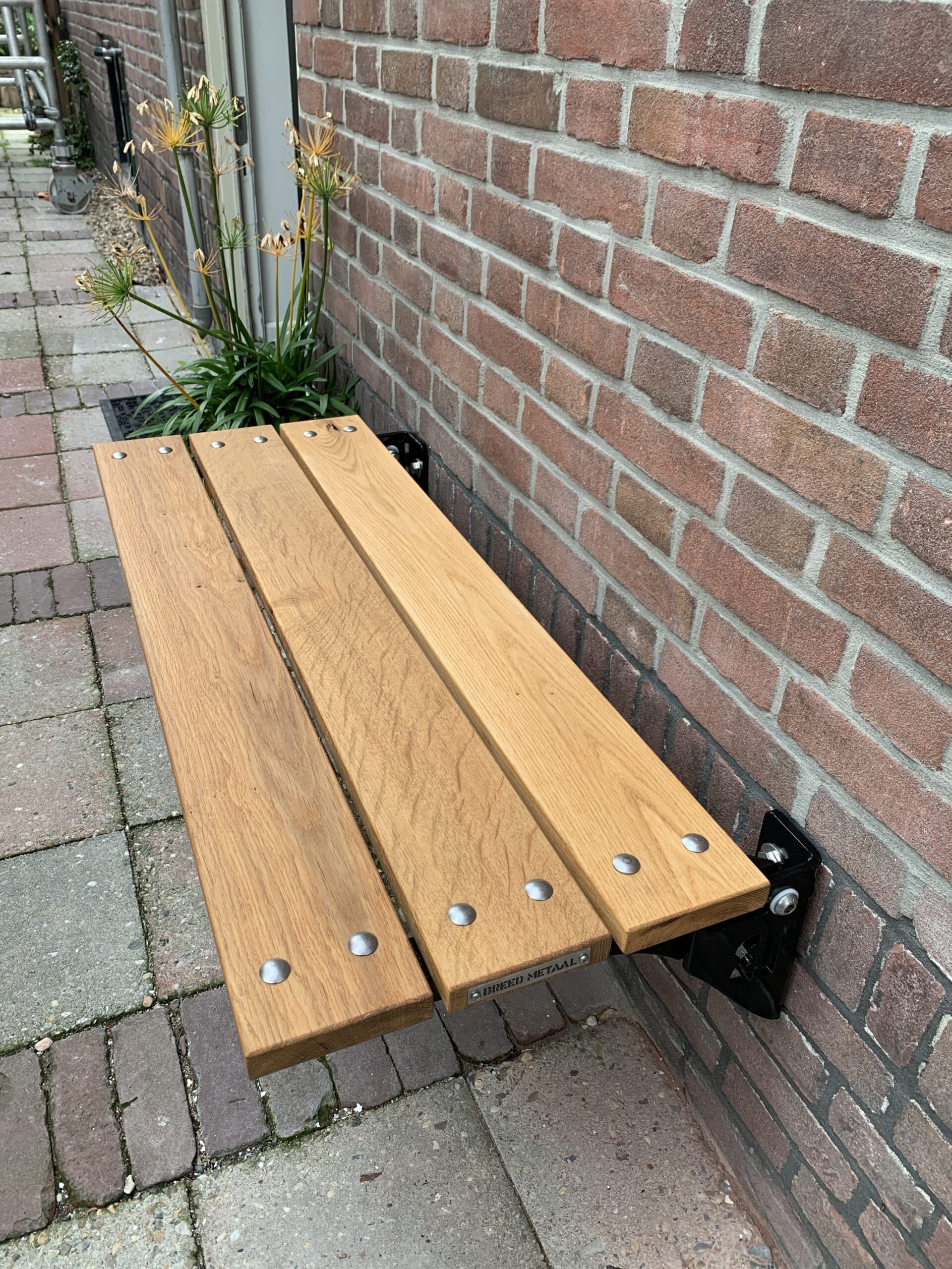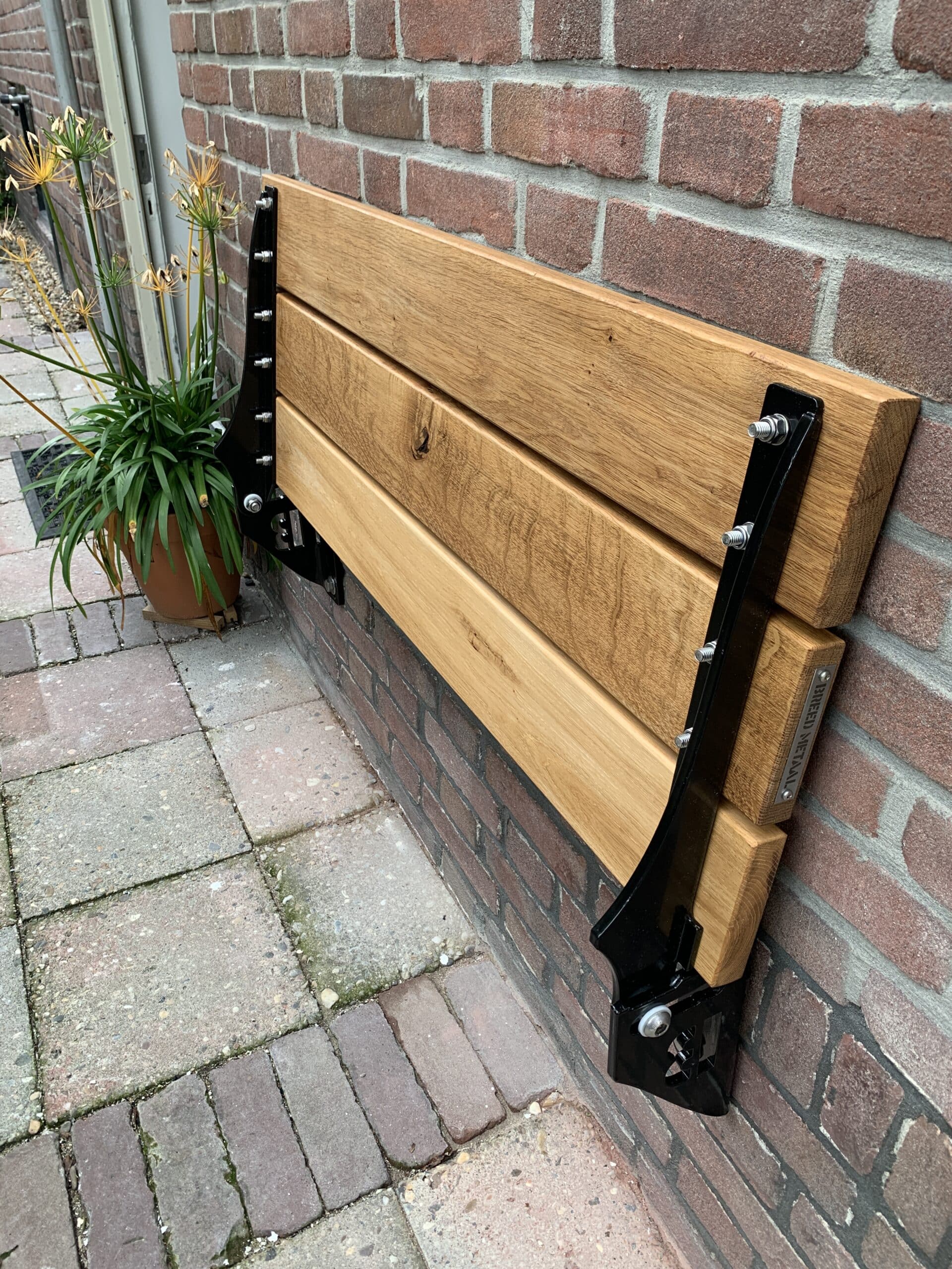 Wat onderscheidt onze gevelbank van concurrenten? Wij hebben de beste eigenschappen die een gevelbank kan hebben gecombineerd in één ontwerp. De zitting kan omhoog en omlaag geklapt worden. Je kan een fiets met ketting aan de gevelbank vastmaken. De planken zijn van duurzaam hardhout gemaakt, namelijk eiken. Het staal heeft de beste mogelijke roestbescherming gekregen door het eerst te verzinken en vervolgens dubbellaags te poedercoaten. Alle bouten en moeren zijn van roestvrijstaal gemaakt en de bank is eenvoudig te monteren. Wat wil je nog meer?